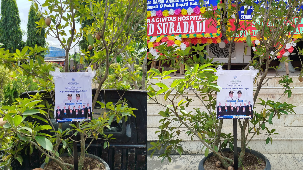 Berbeda dengan ucapan yang biasanya berupa karangan bunga, PDM Kabupaten Tegal memilih mengirimkan bibit pohon sawo senilai Rp500 ribu, setara dengan harga karangan bunga pada umumnya.