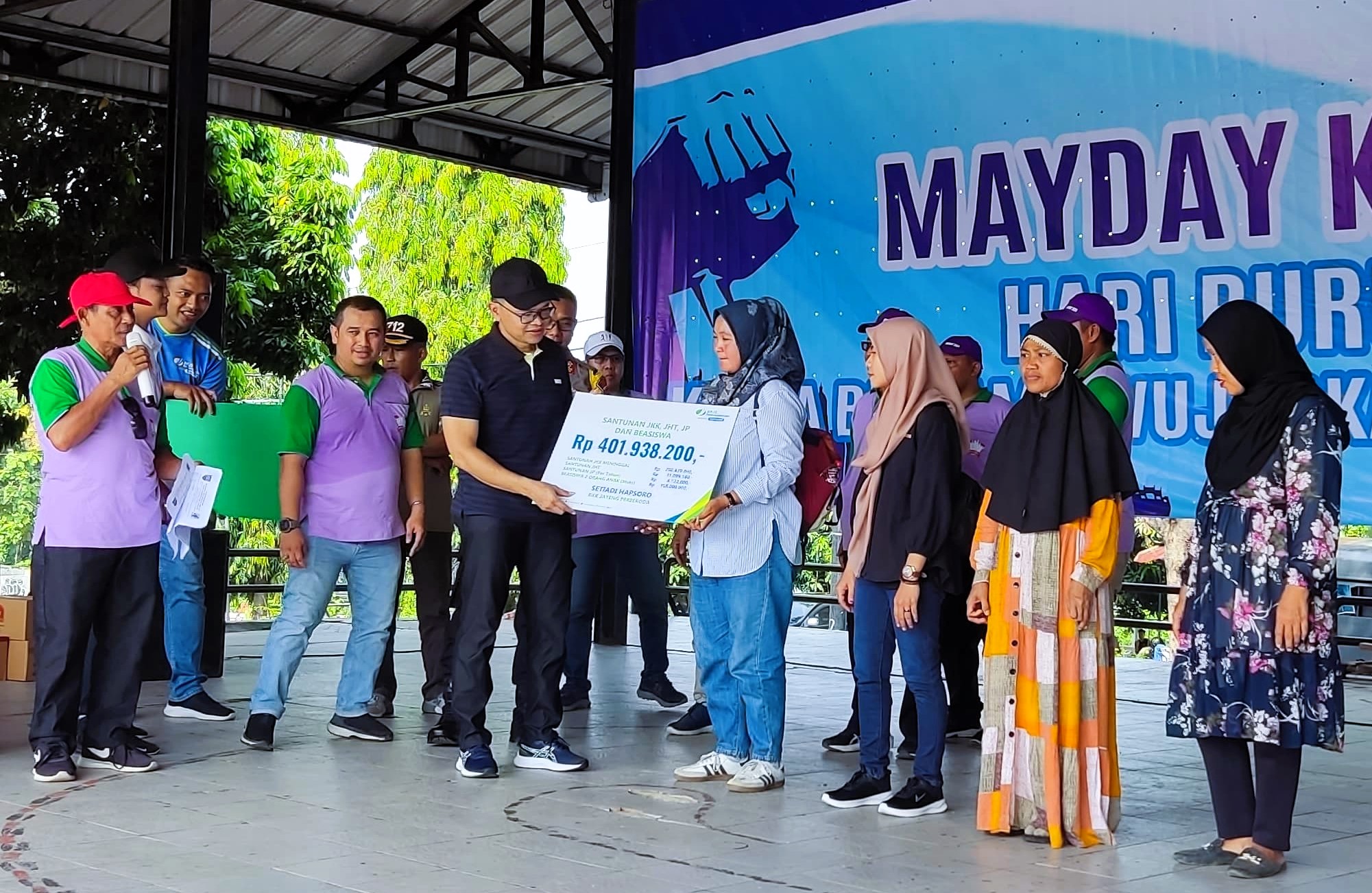 Pada kesempatan ini juga diserahkan santunan dari BPJS Ketenagakerjaan kepada empat ahli waris pekerja yang meninggal dunia. Di antaranya kepada ahli waris Setiadi Hapsoro (BKK Jateng Perseroda), Isam Kholik (Dinas Lingkungan Hidup Kabupaten Tegal), Nadia Nur Azizah (Tegal Jaya Makmur Sejahtera) dan Istachori (Dirgantara Surya Bakti Utama). (HR/hn)