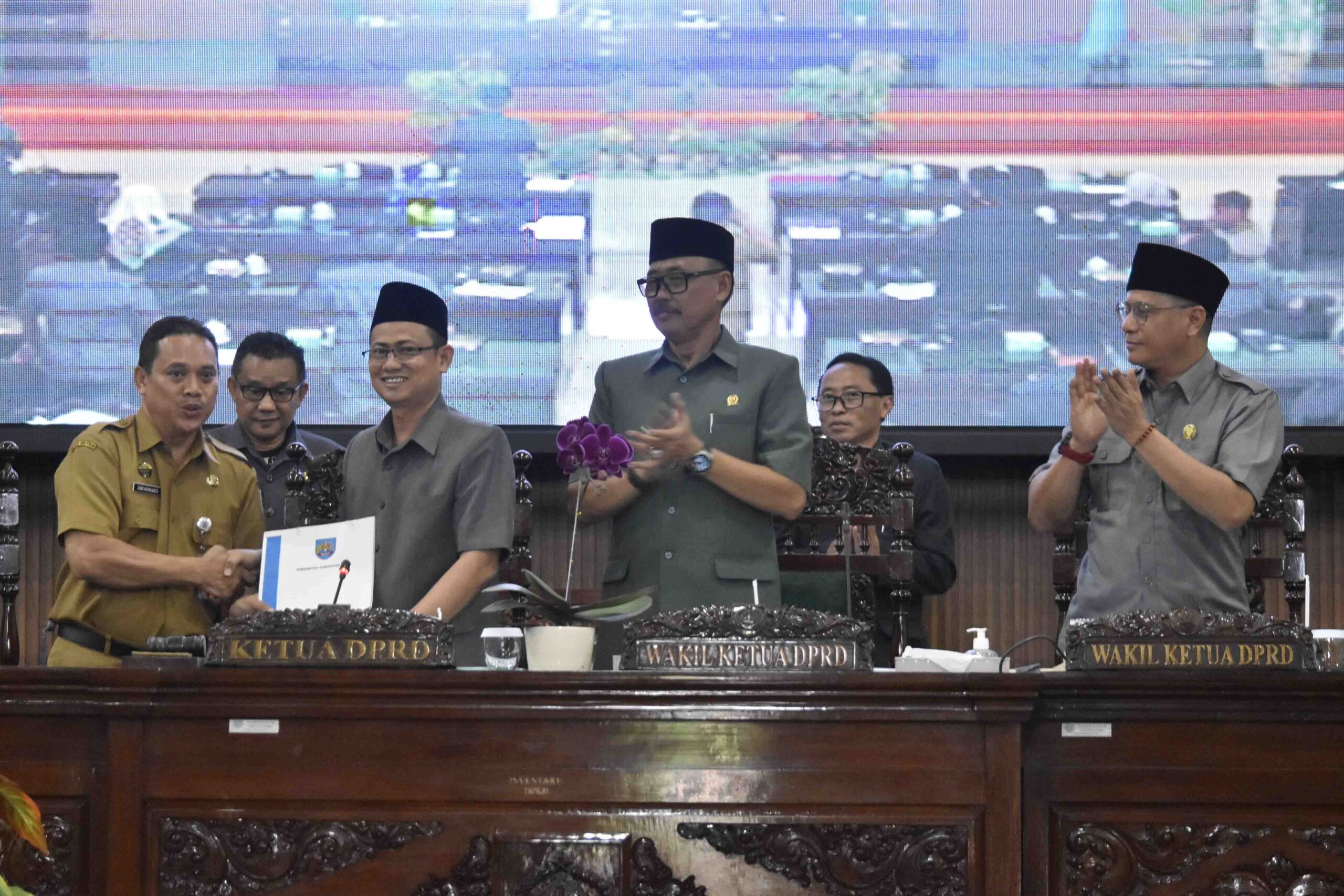 SLAWI — DPRD Kabupaten Tegal menggelar rapat paripurna persetujuan Rancangan Peraturan Daerah (Raperda) Senin (13/11/2024), Rapat Paripurna ini dipimpin langsung oleh Ketua DPRD Kabupaten Tegal H.Wasbun Jauhara Khalim.,SE Di Dampingi Wakil Ketua DPRD Kabupaten Tegal, Sugono, Rudi Indrayani.,SH.,MH,