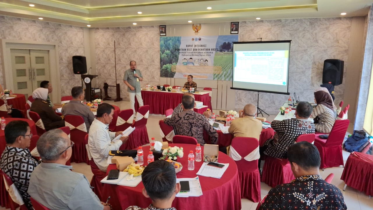 BREBES, korantegal.com – Desa Kradenan Kecamatan Kersana, Kabupaten Brebes ditetapkan sebagai pilot project Kampung Reforma Agraria (KRA) Kabupaten Brebes. Penetapan KRA berbarengan dengan Rapat Integrasi Penataan Aset dan Penataan Akses Gugus Tugas Reforma Agraria (GTRA) di Hotel Dedy Jaya Jalan Ahmad Yani Brebes, Kamis (14/11/2024).