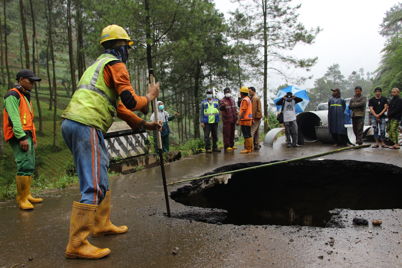 Sementara itu, Kepala Balai Pengelolaan Jalan Wilayah Tegal Wahyutoro Soetarno menyampaikan, pertama perbaikan dilakukan dengan pemasangan armco (gorong-gorong baja bergelombang) sepanjang aliran air di bawah jalan, kemudian akan ditimbun material.