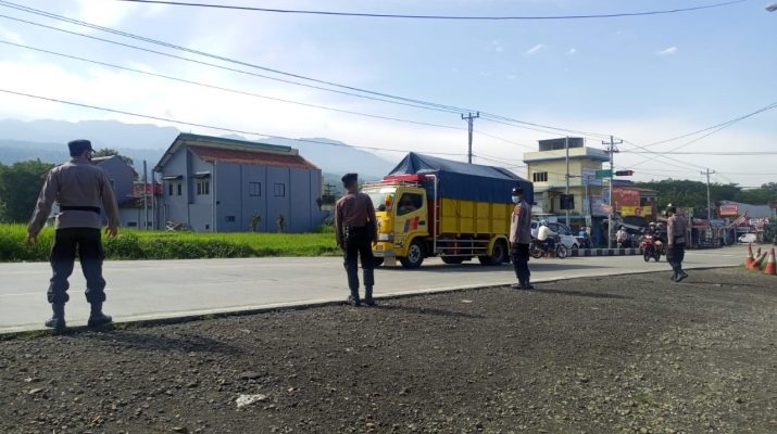 Petugas Pospam terlihat melakukan pengaturan lalulintas di sekitar kawasan terminal Bumiayu untuk memantau arus mudik 2022, dan akan melakukan skema pengaturan lalin apabila ada kepadatan pemudik.