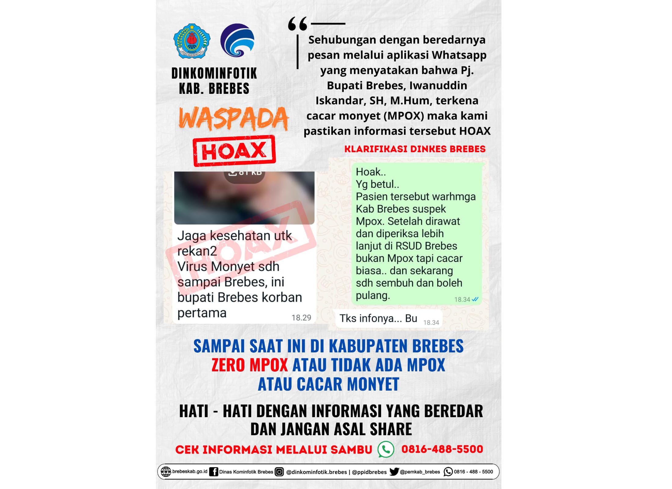 Kepala Dinas Komunikasi, Informatika dan statistik (Dinkominfotik) Kabupaten Brebes Tatag Koes Adianto mengatakan, jika berita yang telah tersebar luas di media sosial mengenai Mpox Pj Bupati Brebes tidak benar.