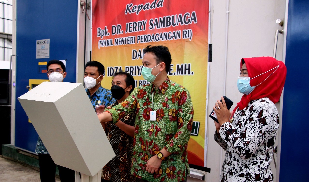 BREBES, korantegal.com – Gudang bawang merah dengan Sistem Resi Gudang (SRG) yang berada di Desa Klampok Kecamatan Wanasari, Brebes, diresmikan Wakil Menteri Perdagangan (Wamendag) Jerry Sambuaga, Selasa (16/5/2021). Gudang SRG tersebut sudah berteknologi Controle Athmosphere Storage (CAS). Diharapkan dapat menyimpan hasil panen dengan daya tahan lebih lama dan kualitas yang tidak berubah.