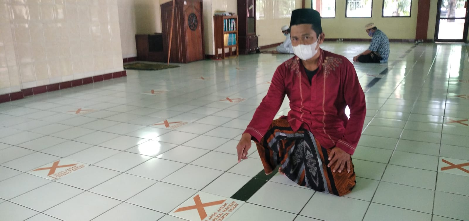 Tanda silang dengan menggunakan plaster warna itu dimaksudkan agar jamaah sholat tetap menjaga jarak saat menunaikan ibadah sholat berjamaah.
