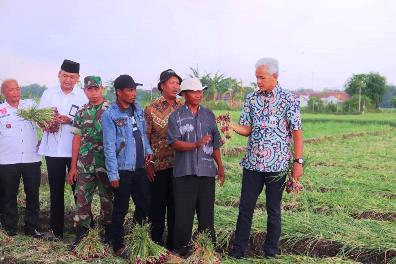 Orang nomor 1 di Jawa Tengah itu menemui petani bawang merah di Desa Glonggong, Kecamatan Wanasari. Para petani mengeluhkan kondisi hasil panen yang dianggap tidak memuaskan.