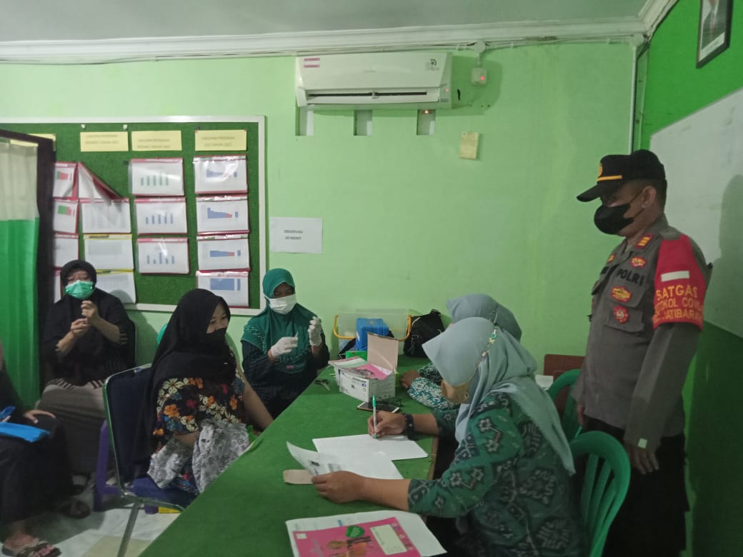 VAKSINASI - Kapolsek Jatibarang AKP Sunarto saat memantau vaksinasi di SMP Negeri 2 Jatibarang.