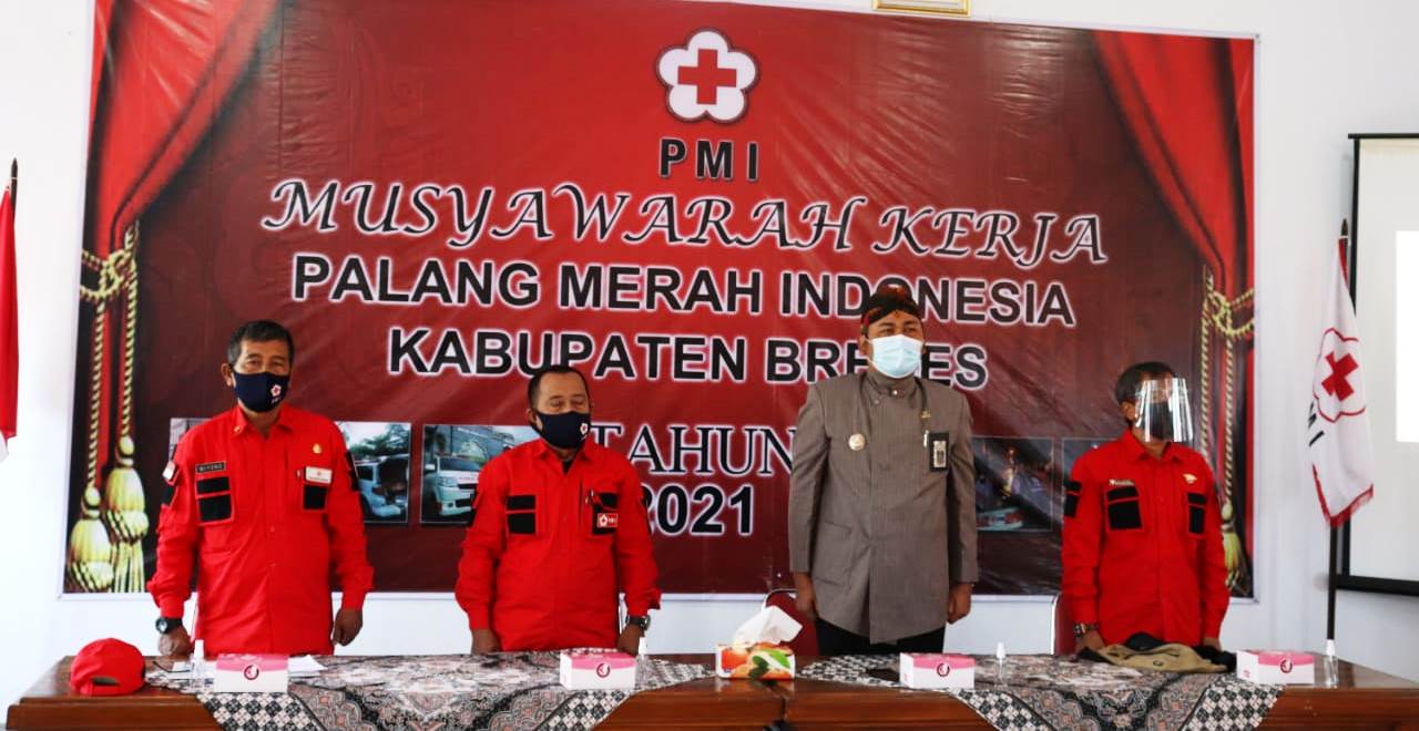 BREBES, korantegal.com – Dalam rangka mengevaluasi program kerja tahun 2020 dan penyusunan rencana kerja tahun 2021, Palang Merah Indonesia (PMI) Kabupaten Brebes menggelar Musyawarah Kerja (Muker) 2021 di Aula Markas PMI Brebes, pada Kamis (28/1/2021).