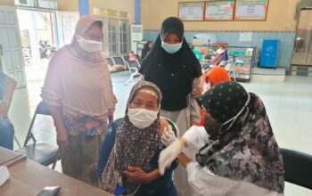BREBES, korantegal.com – Warga di Desa Padakaton, Kecamatan Ketanggungan, Kabupaten Brebes antre untuk mendapatkan vaksin covid-19. Warga terlihat antusias untuk bisa mengikuti kegiatan vaksinasi yang diadakan di aula balai desa setempat.