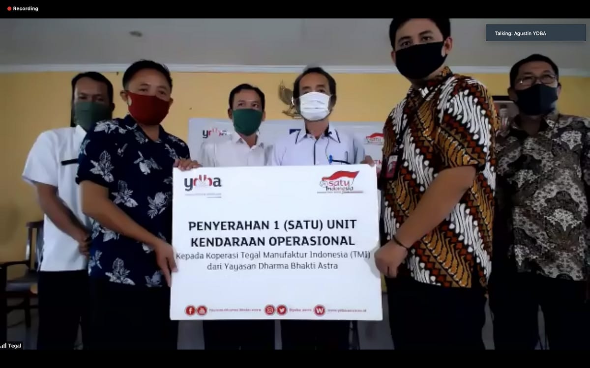 KRAMAT – Yayasan Dharma Bhakti Astra (YDBA) memberikan bantuan kendaraan operasional kepada Koperasi Tegal Manufaktur Indonesia (TMI) di Ruang Pertemuan LIK Takaru Tegal, Rabu (8/7/2020). Selain penyerahan bantuan, kegiatan itu juga diisi dengan Sharing IKM Tegal yang dilakukan secara virtual melalui aplikasi Zoom.