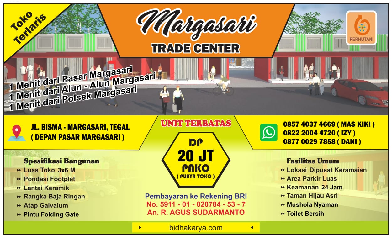 MARGASARI, korantegal.com – Hadirnya Margasari Trade Center ini dipastikan bakal menjadi pusat perekonomian di wilayah perbatasan antara Kabupaten Tegal dengan Kabupaten Brebes. Pusat perdagangan dan Usaha Kecil Menengah (UKM) itu berlokasi di belakang Pasar Margasari, Kecamatan Margasari, Kabupaten Tegal. Ini merupakan hasil kerjasama investor CV Bidha Karya dengan Perhutani KPH Balapulang. Upaya meningkatkan perekonomian di wilayah perbatasan itu juga sejalan dengan Visi Misi Bupati Tegal dalam pengembangan UKM di Kabupaten Tegal.