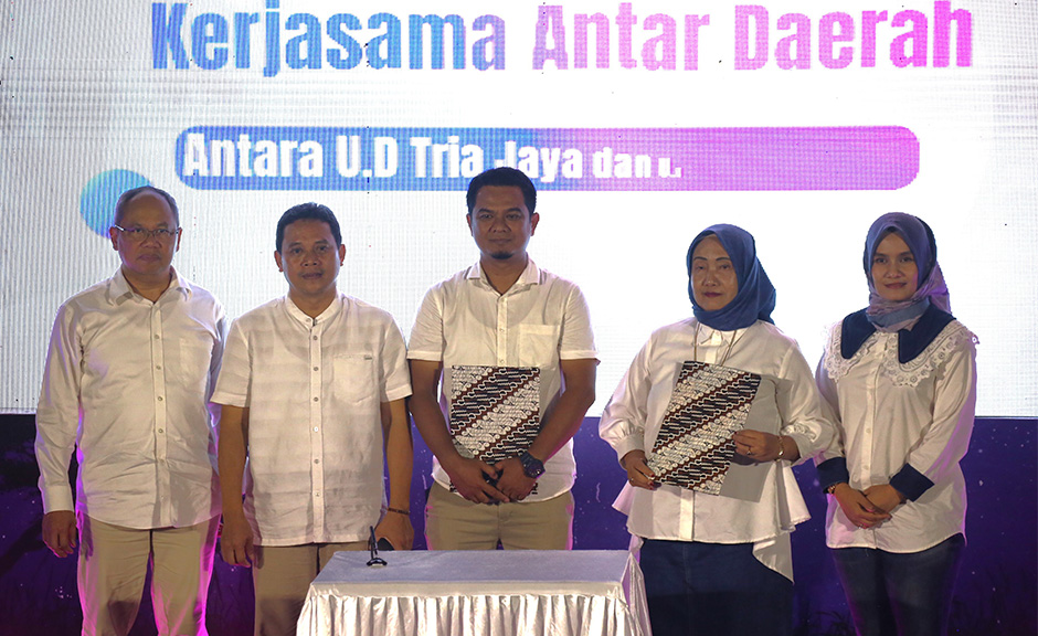 Seremonial penandatanganan MoU kerja sama antar daerah (KAD) dengan pengusaha yang bergerak di bidang komoditi pangan (beras) sebagai upaya dalam pengendalian inflasi daerah di wilayah Kabupaten Tegal.