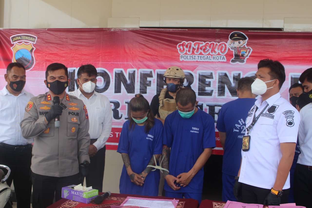Kapolres Tegal Kota AKBP Rahmad Hidayat, S.S mengungkapkan, ketiga kasus itu adalah tindak pidana pencurian (penjambretan) yang terjadi pada hari Senin tanggal 17 September 2021. Lokasinya di Warung Makan Swie Gwan Jalan Teri, Kelurahan Tegalsari Kota Tegal. Tersangkanya 2 pasangan sejoli yang bukan suami istri atas nama Fandi Maulidin Priyono dan Aulia Ramadhani Putri. Barang bukti yang diamankan yaitu sebuah sepeda Motor Satria Fu dan sebuah handphone merk Samsung A11 warna hitam.