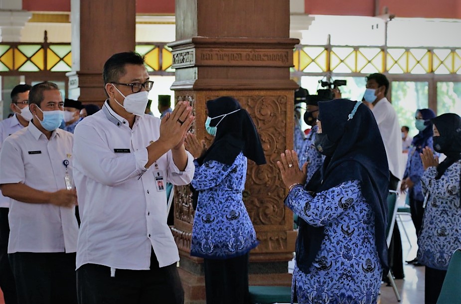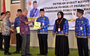 Pesan tersebut disampaikan Sekretaris Daerah Kabupaten Tegal Widodo Joko Mulyono saat secara simbolis menyerahkan surat keputusan (SK) kenaikan pangkat periode 1 Oktober 2021 kepada 379 Pegawai Negeri Sipil (PNS) Pemkab Tegal golongan IV, III dan II di Pendopo Amangkurat, Rabu (08/09/2021) pagi.