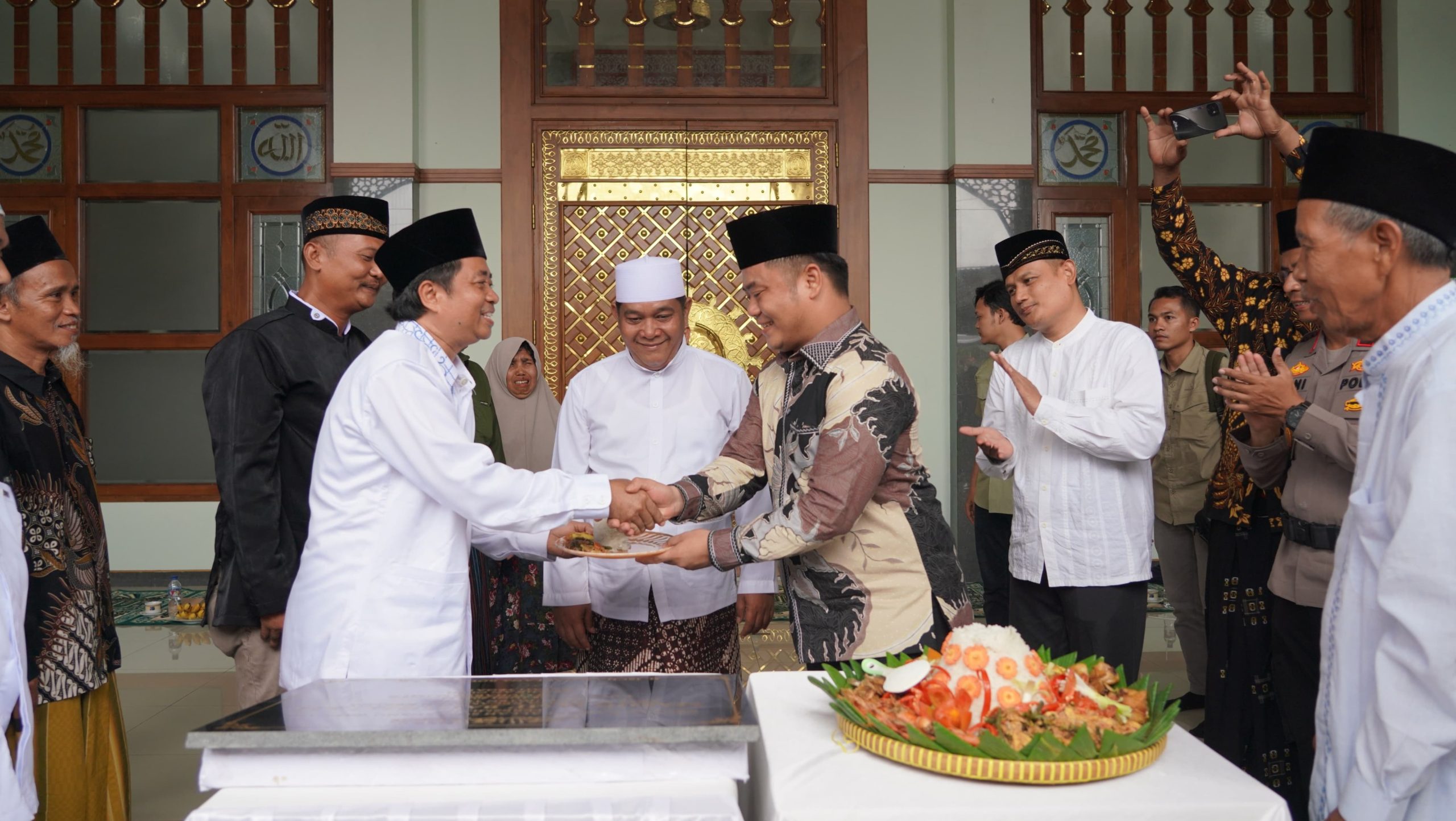 Kramat – Bupati Tegal Ischak Maulana Rohman meresmikan Masjid Jami Baitussalam di Desa Maribaya, Kecamatan Kramat pada Sabtu (28/06/2025). Peresmian ini ditandai dengan penandatanganan prasasti, pemotongan tumpeng dan pengguntingan pita oleh Bupati Ischak seusai menyampaikan sambutannya di hadapan ratusan warga Desa Maribaya.