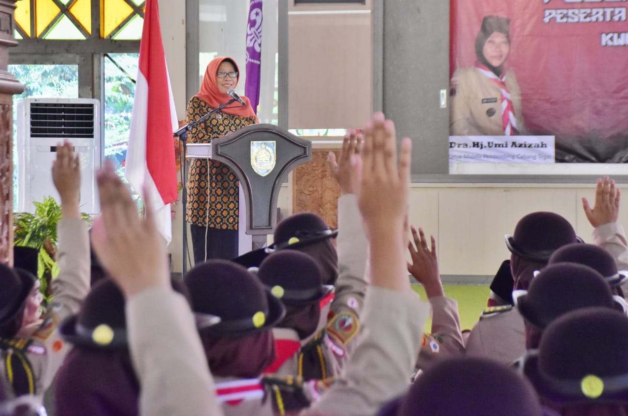 Bupati Tegal Umi Azizah melepas 32 peserta Kontingen Pramuka Penegak dan Pandega Kabupaten Tegal yang akan mengikuti Raimuna Nasional (Rainas) ke-12 Tahun 2023 Cibubur, Jakarta Timur. Acara pelepasan kontingen berlangsung di Pendopo Amangkurat, Kamis (10/08/2023).