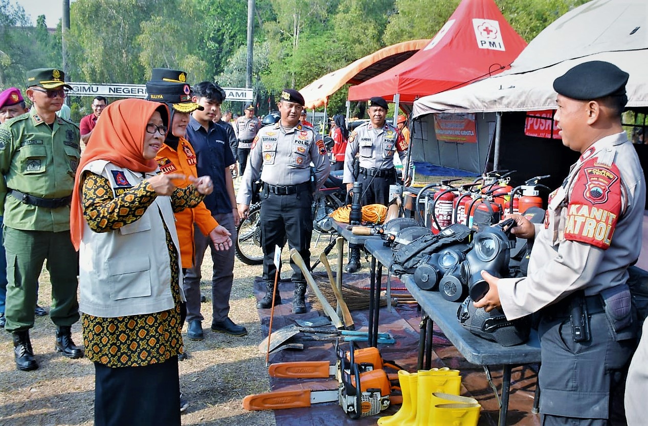 Hal ini disampaikan Bupati Tegal saat memimpin apel gabungan Kesiapsiagaan Kebencanaan dan Pengendalian Kebakaran Hutan dan Lahan di Lapangan Pemkab Tegal, Kamis (10/08/2023) pagi. Apel kesiapsiagaan ini diikuti sedikitnya 500 personil meliputi TNI-Polri, relawan BPBD, siswa – siswi sekolah dan organisai kepemudaan.