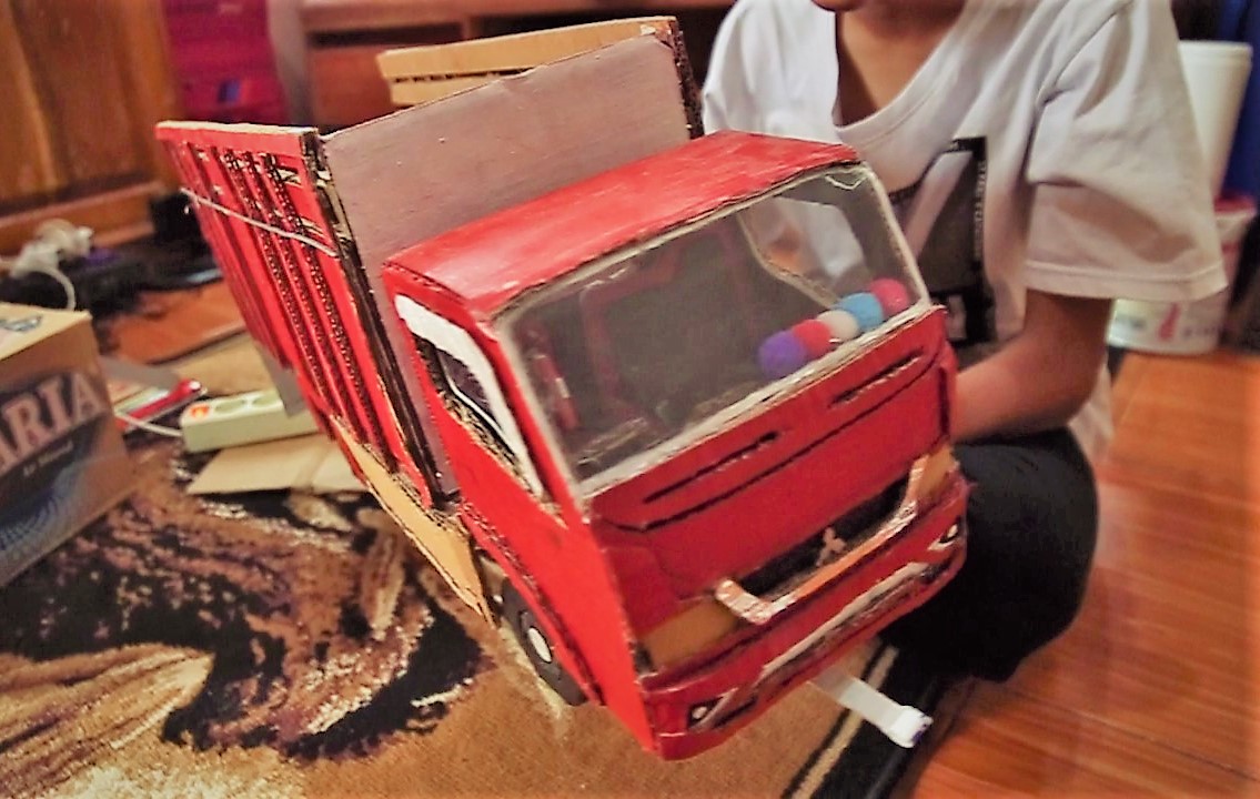 Salah satu miniatur truk dari kardus bekas atau cardboard craft milik Rama yang tersisa. Sebagian koleksi terbaiknya sudah ia berikan ke teman, saudara ataupun tetangga yang menyukainya.