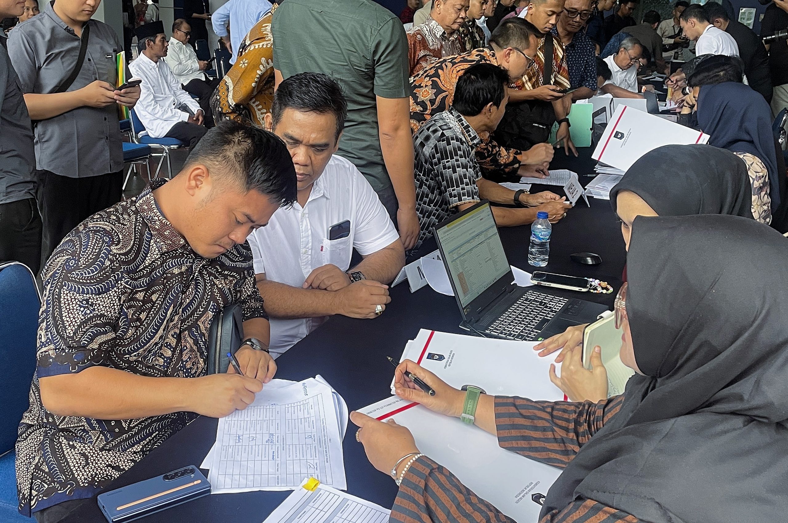 Keduanya datang bersamaan dan turun dari mobil di gerbang pintu masuk Kantor Kemendagri lalu berjalan kaki menuju tempat registrasi pendaftaran dengan didampingi ajudan masing-masing. Pun demikian dengan kepala daerah terpilih lainnya di Jawa Tengah yang juga mengikuti pemeriksaan kesehatan di sesi ketiga hari pertama ini.