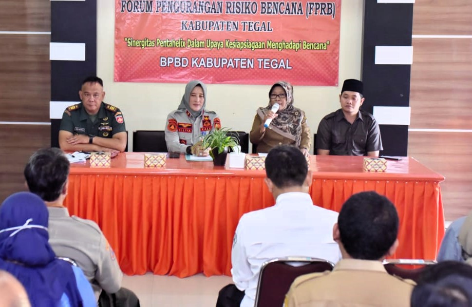 Slawi – Sebagai bagian dari sistem pencegahan dan mitigasi untuk mengurangi risiko bencana secara terorganisir, terpadu, cepat, dan tanggap, Pemerintah Kabupaten Tegal melalui Badan Penanggulangan Bencana Daerah (BPBD) Kabupaten Tegal menginisiasi pembentukan Forum Pengurangan Risiko Bencana atau FPRB tahun 2023 ini. Pembentukan forum tersebut dibuka langsung Bupati Tegal Umi Azizah di Aula BPBD Kabupaten Tegal, Senin (09/10/2023).
