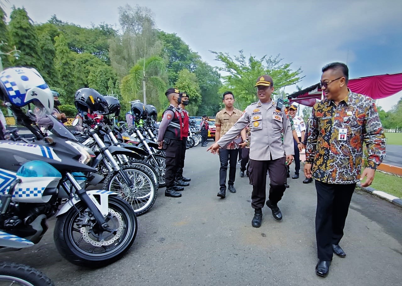 Slawi – Sekretaris Daerah Kabupaten Tegal Widodo Joko Mulyono lakukan pengecekan personel dan kendaraan yang akan digunakan untuk pengamanan Natal 2022 dan Tahun Baru 2023 (Nataru). Hal ini dilakukan Joko saat memimpin Apel Gelar Pasukan Operasi Lilin di lapangan Pemda Kabupaten Tegal, Kamis (22/12/2022).