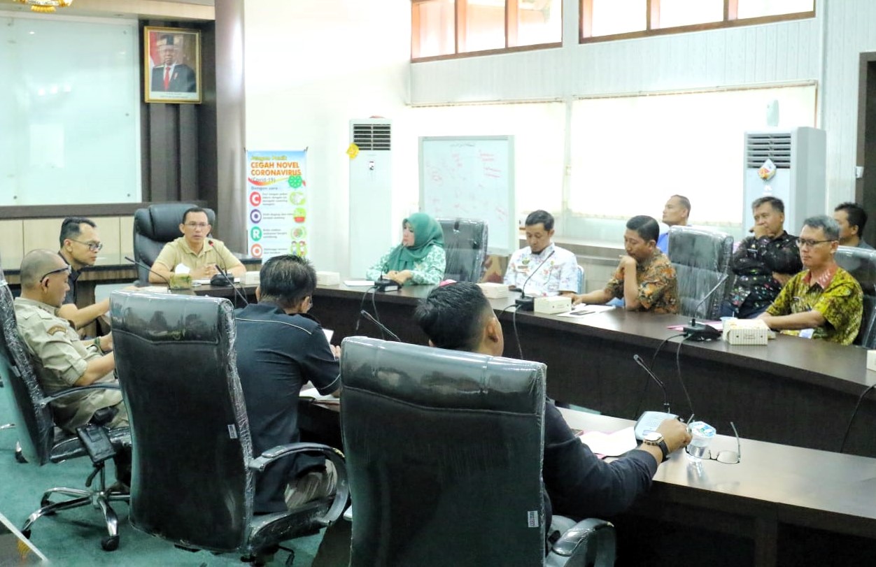 Slawi – Penjabat (Pj) Bupati Tegal Agustyarsyah didampingi Sekretaris Daerah Kabupaten Tegal Amir Makhmud gelar rapat koordinasi bersama 18 camat se-Kabupaten Tegal terkait kesiapan dan dukungannya dalam mensukseskan pelaksanaan pemilu 2024 di Ruang Rapat Bupati Tegal, Jumat (19/01/2024) siang.