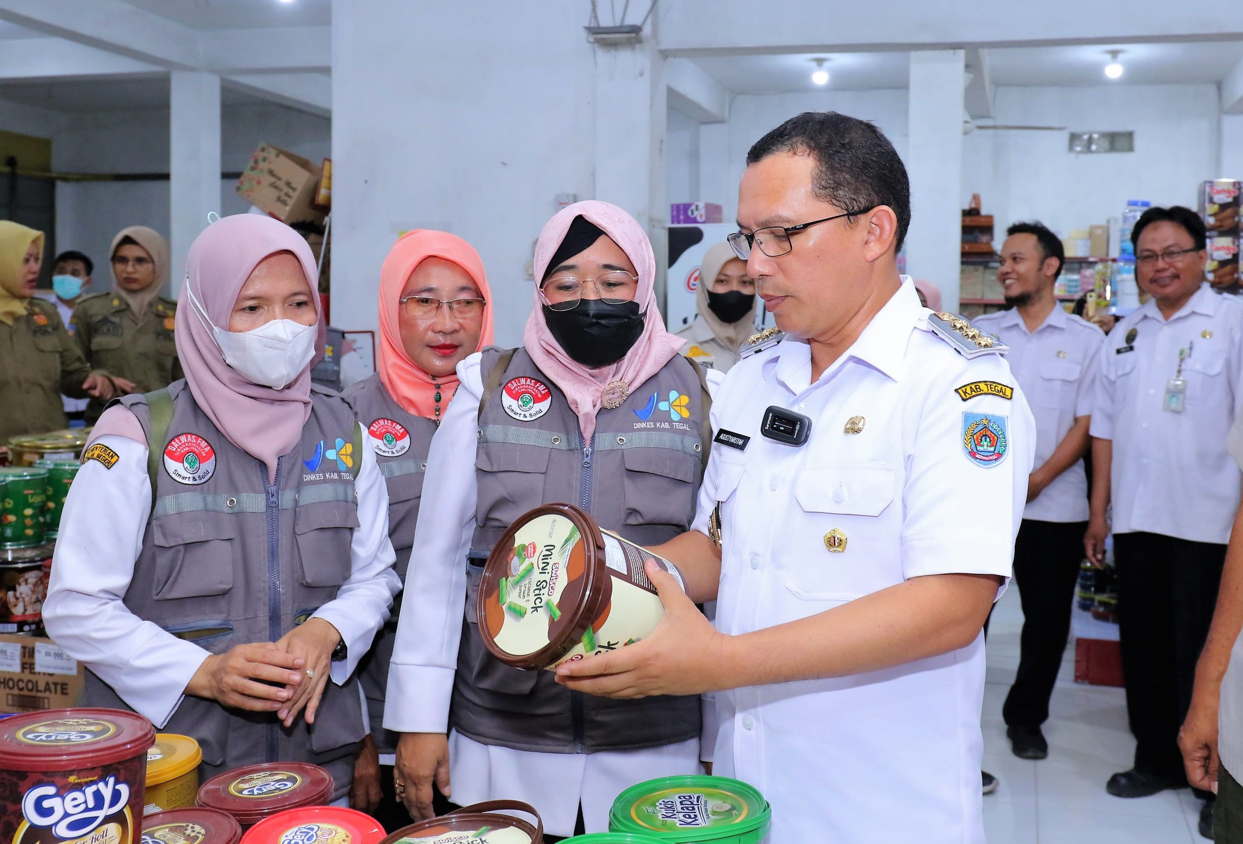 Lebaksiu – Selain bisa menimbulkan kematian, makanan yang terkontaminasi bahan berbahaya juga bisa berdampak pada kesehatan jangka panjang. Guna meningkatkan keamanan pangan, Pj Bupati Tegal Agustyarsyah beserta Tim Koordinasi Pembinaan dan Pengawasan Obat dan Makanan Kabupaten Tegal melakukan inspeksi produk pangan melalui kegiatan intensifikasi pengawasan makanan dan minuman menjelang Hari Raya Idul Fitri tahun 2024.