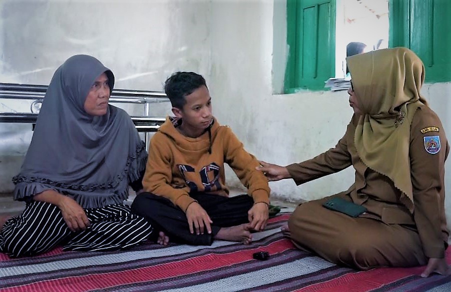 Pagerbarang – Bupati Tegal Umi Azizah mengunjungi rumah Romy Setiawan di Desa Randusari, Kecamatan Pagerbarang, Selasa (10/04/2023). Romy, siswa kelas tiga SMPN 1 Pagerbarang menjadi korban tewas akibat tawuran atau perang sarung yang terjadi, Senin (11/04/2023) malam.