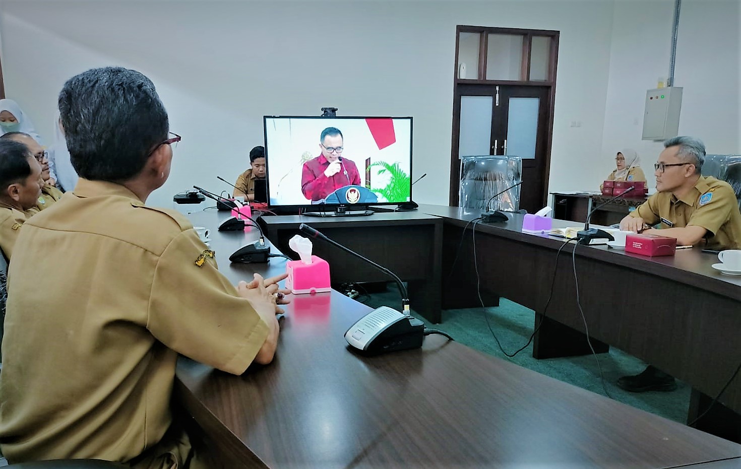 Slawi – Wakil Presiden RI Ma’ruf Amin resmi meluncurkan Mal Pelayanan Publik (MPP) Digital secara serentak di 21 kota dan kabupaten di Indonesia. Peluncuran tersebut dilaksanakan melalui siaran langsung dari Istana Presiden, Selasa (20/06/2023). Sejumlah pejabat Pemkab Tegal menyimak siaran langsung tersebut dari ruang rapat Sekda Kabupaten Tegal.