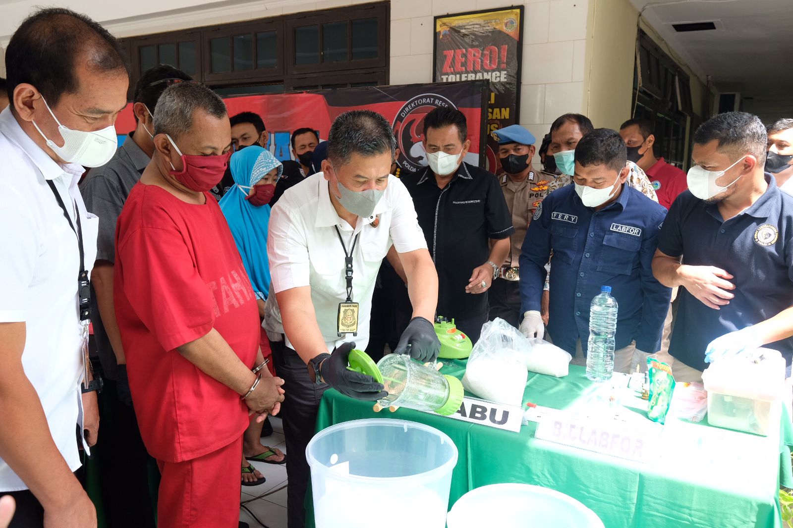 Barang bukti yang dimusnahkan tersebut merupakan sitaan dari 3 tersangka berinisial HS, UK dan KK dalam kasus penyelundupan Sabu dari Malaysia.