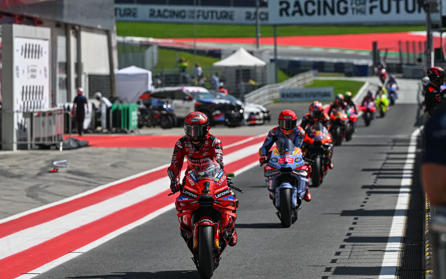 Sabtu luar biasa bagi Francesco Bagnaia (Ducati Lenovo Team). Juara Dunia bertahan itu mengemas kemenangan Tissot Sprint di depan rival utamanya, Jorge Martin (Prima Pramac Racing, yang dihukum Long Lap Penalty lantaran memotong lintasan di Tikungan 2.