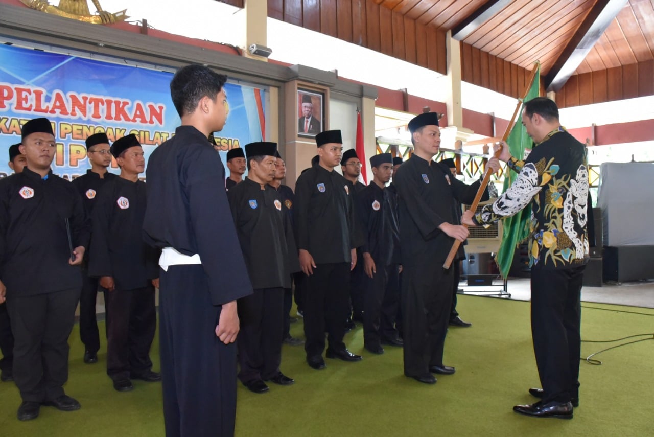 SLAWI, korantegal.com – Wakil Bupati Tegal Sabilillah Ardie dilantik menjadi Ketua Ikatan Pencak Silat Indonesia (IPSI) cabang Kabupaten Tegal masa bakti 2019-2023, oleh Ketua Umum Pengurus Provinsi IPSI Jawa Tengah Harry Nuryanto, Kamis (30/1) di Pendopo Amangkurat. Dihadiri oleh 18 perwakilan perguruan pencak silat se-Kabupaten Tegal, Ardie mengatakan, akan berusaha meningkatkan target prestasi pencak silat Kabupaten Tegal.