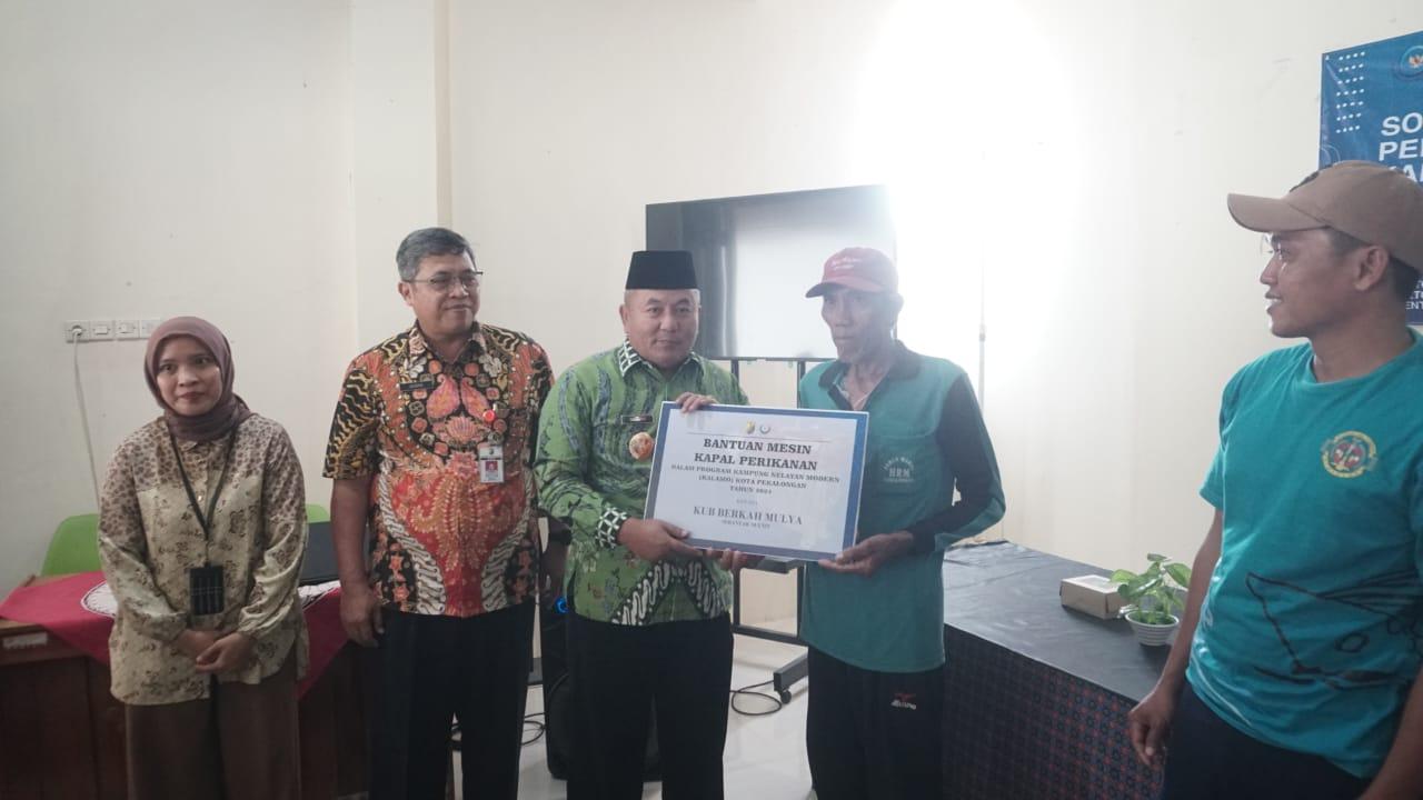Penyerahan bantuan 20 buah mesin kapalsecara simbolis oleh Plt Walikota Pekalongan, H Salahudin kepada perwakilan KUB.