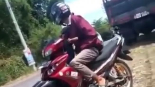 Perempuan itu langsung mengambil ponsel dan merekam aksi pengendara motor itu. Rekaman video itu kemudian ia unggah di media sosial dan dibagikan ulang pengelola akun @beritapekalongan1, Rabu (22/9/2021).