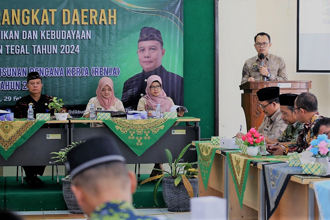 Slawi – Sekretaris Daerah Kabupaten Tegal Amir Makhmud meminta tenaga pendidik untuk membekali pelajar dengan kecakapan dan kecerdasan baru. Hal tersebut disampaikannya saat berlangsung Forum Perangkat Daerah Penyusunan Rencana Kerja Dinas Pendidikan dan Kebudayaan (Dikbud) Kabupaten Tegal Tahun 2025 di Aula Dinas Dikbud, Kamis (29/02/2024).