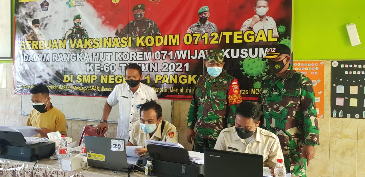 Pertama Kali di Kabupaten Tegal, Kodim 0712 Berikan Vaksin kepada Siswa SMP Pangkah