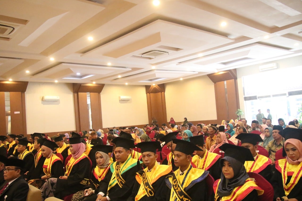 SLAWI, korantegal.com – Politeknik Baja Tegal yang dibawah naungan Yayasan Pendidikan Bhakti Praja melaksanakan prosesi wisuda mahasiswa pertamanya pada Kamis (30/1) pagi di Hotel Grand Dian Slawi. Meskipun baru menggelar prosesi wisuda pertama yang meluluskan 41 mahasiswa. Bupati Tegal menitip pesan kepada para wisudawan untuk tidak minder di dunia kerja, seperti yang disampaikan oleh Staf Ahli Bupati Bidang Hukum, Politik dan Pemerintahan Agus Subagyo.