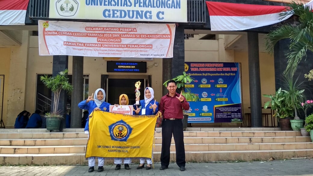 LEBAKSIU – Prestasi hebat kembali diraih SMK FAMUBA (SMK Farmasi Muhammadiyah Lebaksiu) yang meraih juara 1 lomba cerdas cermat farmasi tingkat eks Karesidenan Pekalongan. Perlombaan yang berlangsung di Universitas Pekalongan diikuti sejumlah SMK Farmasi yang berasal dari berbagai SMK se-Karesidenan Pekalongan pada (26/8/2018).