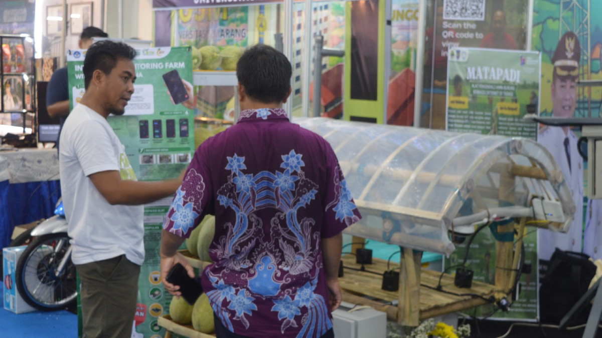 Dalam pameran, tim menampilkan buah melon hasil panen sebagai bukti nyata keberhasilan riset kolaboratif. Tak hanya memamerkan produk, mereka juga berdialog dengan pengunjung tentang peluang bisnis pertanian digital dan strategi pemasaran berbasis teknologi.