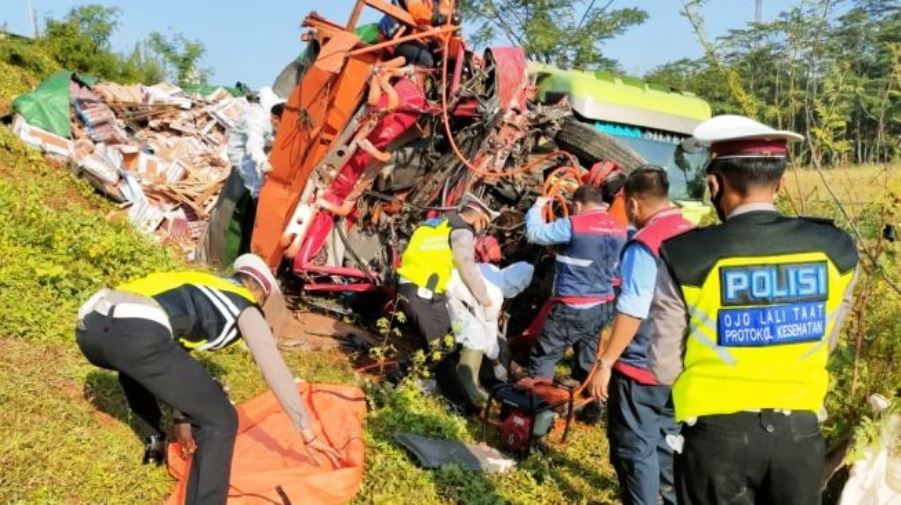 “Akibat mengantuk, truk yang melaju oleng dan menabrak truk yang tengah berhenti darurat karena ganti ban itu. Keduanya langsung menabrak pembatas dan terjun ke bawah,” jelasnya.