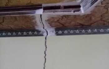 “Rekahannya cuma 5 sentimeter, tapi kalau kena air hujan bisa makin lebar. Makanya tadi kita koordinasi dengan desa supaya menutupi rekahan itu,” ujarnya.