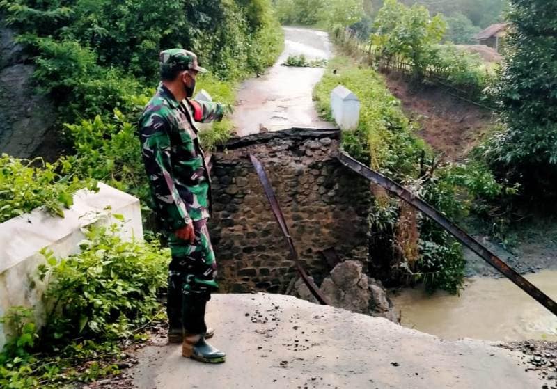 “Jembatan sepanjang 10 meter dan lebar 4 meter yang membentang di atas Sungai Cidadali setinggi 5,3 meter, terputus pagi ini pada pukul 06.45 WIB,” terangnya, Kamis (15/4/2021).