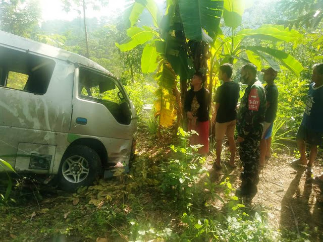 Danramil dan warga mengevakuasi korban mobil elf.