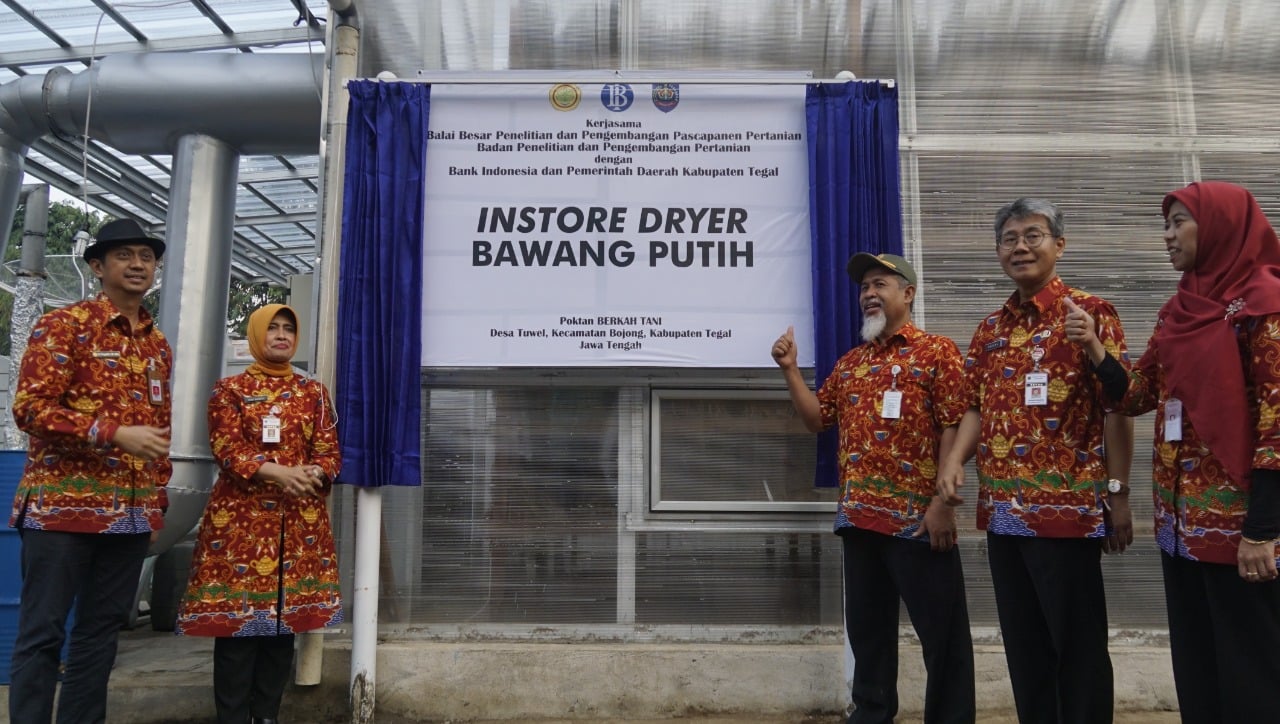 Gudang pengering yang berkapasitas 5-6 ton itu, diresmikan Kepala Balai Besar Penelitian dan pengembangan Pascapanen Prayudi Syamsuri bersama Asisten II Bidang Ekonomi dan Pembangunan Pemprov Jateng Peni Rahayu, Selasa (12/11) usai panen bawang putih di Desa Tuwel.