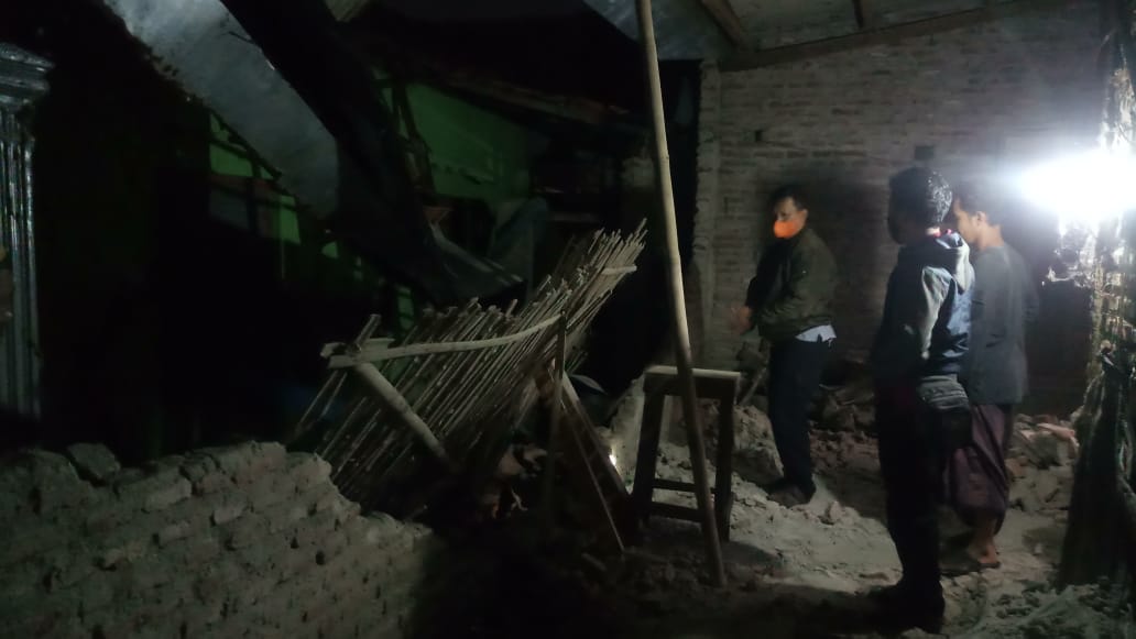 Lalu Masrukhin (46) RT.05/04 rusak pada dinding pembatas rumah roboh dengan panjang 8 meter dan tinggi 3 meter. Adapun rumah milik Sakirin (52) RT.05/04 ( RR ) mengalami rusak pada atap teras samping rumah. Sedangkan untuk 18 rumah lainya mengalami rusak ringan dan sudah ditangani pemilik rumah.