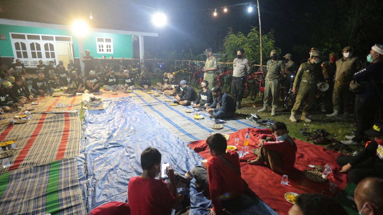 DUKUHWARU, korantegal.com – Dinilai melanggar larangan berkerumun di masa tanggap darurat Covid-19 ini, jajaran Satuan Polisi Pamong Praja (Satpol PP) Kabupaten Tegal bersama anggota Kepolisian Sektor (Polsek) Dukuhwaru datangi acara halal bihalal komunitas Sepeda Lipat Slawi (Selis), Sabtu (30/5) malam dan meminta panitia mempercepat acara untuk kemudian membubarkan diri. Selain tak mengantongi izin, acara yang digelar di salah satu rumah warga di Desa Bulakpacing Kecamatan Dukuhwaru ini juga tidak menerapkan standar protokol kesehatan seperti menyediakan sarana cuci tangan, menjaga jarak aman fisik minimal satu hingga dua meter, mengukur suhu tubuh dan mengenakan masker.