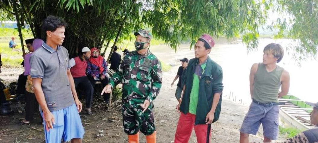 Petugas dari TNI berkoordinasi dengan warga sekitar.