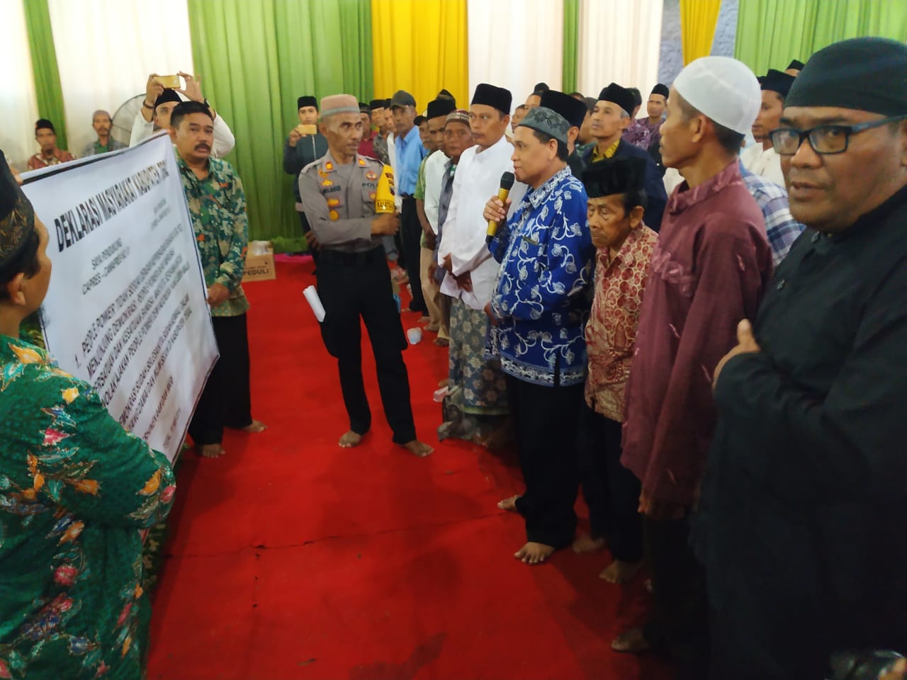 Perwakilan para pendukung kedua kubu tersebut bersama-sama mengucapkan deklarasi damai dan menolak people power. Deklarasi disaksikan Kapolres Tegal AKBP Dwi Agus Prianto dan sejumlah Tokoh Masyarakat.
