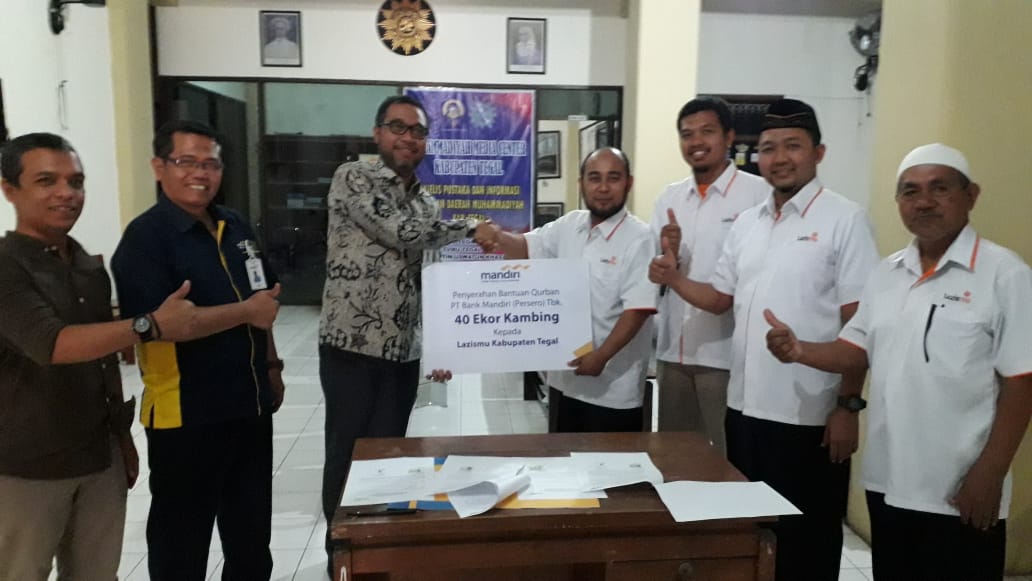 Menurut H. Suwarno, selaku ketua Lazismu kab Tegal mengatakan alhamdulillah Bank mandiri pusat telah mempercayakan kepada lazisMu kab Tegal untuk mengelola dan mendistribusikan 40 ekor kambing yang siap di qurbankan pada Daerah sasaran yang di jadikan tempat qurban di daerah kabupaten Tegal yang jarang ada yang berkurban. Selain itu lazismu kab Tegal bekerja sama dengan Angkatan Muda Muhammadiyah kab Tegal. Semoga kegiatan ini bisa bermanfaat dan saling bersinergi. Ungkap suwarno kepada Redaksi korantegal.com.