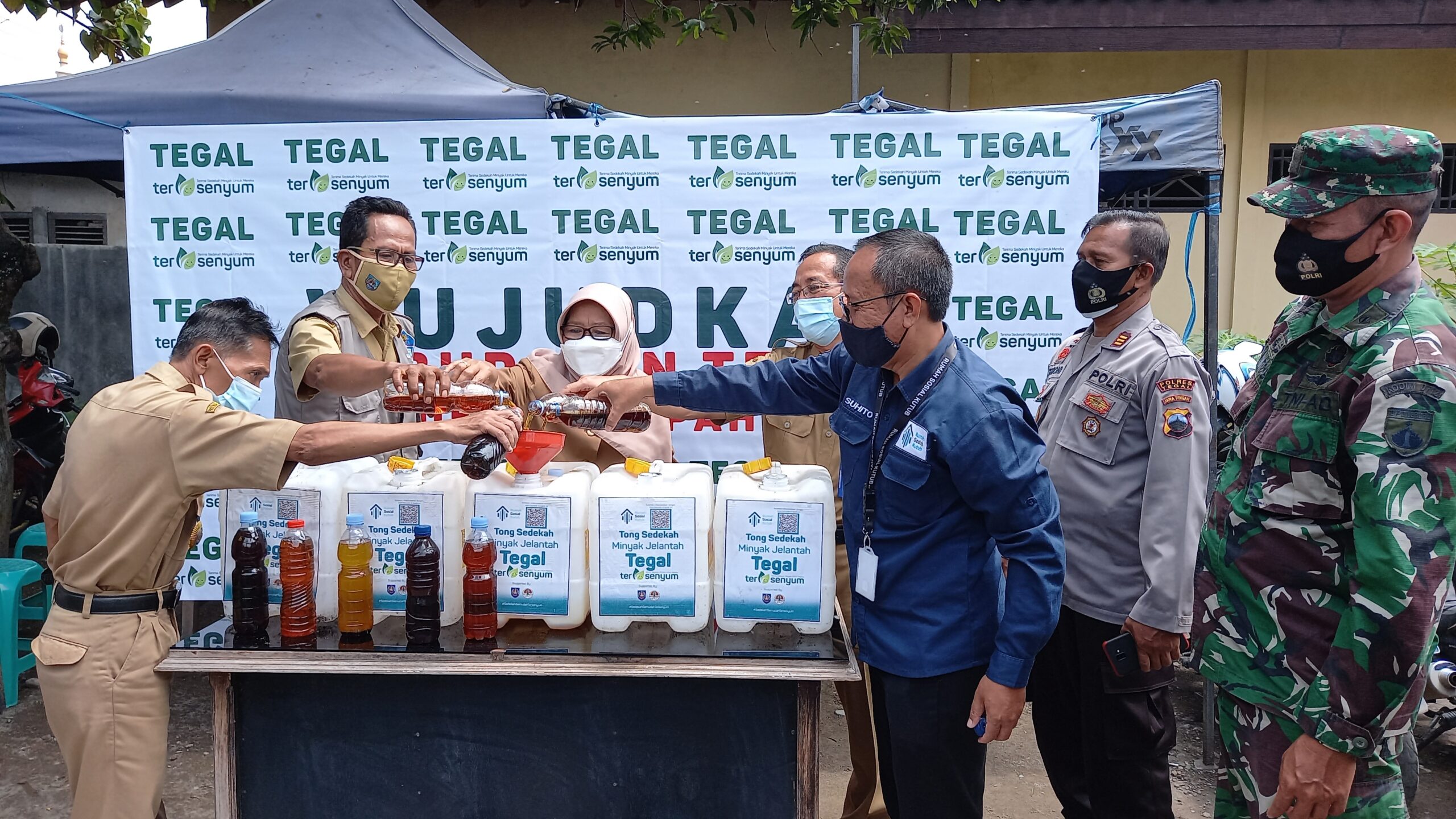 SLAWI, korantegal.com – Bupati Tegal Umi Azizah resmi meluncurkan program sedekah minyak jelantah yang digagas oleh Rumah Sosial Kutub. Peluncuran ini dilakukan pada Selasa (23/02/2021) pagi di Balai Desa Ujungrusi Adiwerna. Lewat program ini, Umi berharap dapat mencegah serta menekan pencemaran lingkungan.